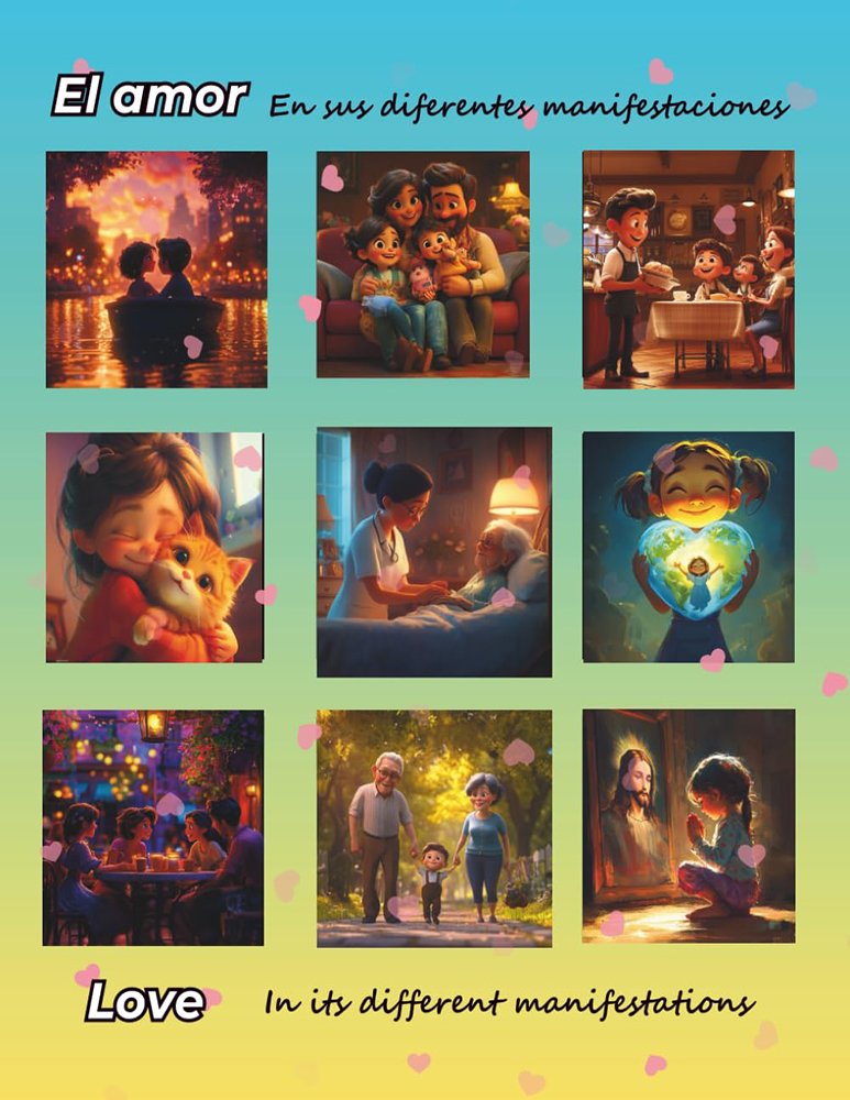El Libro del Amor es una tierna obra bilingüe (inglés y español) que celebra lo hermoso del amor en todas sus formas: entre familia, amigos, hermanos, parejas y con Dios. Escrito con un lenguaje cercano para niños en edad escolar, este libro siembra valores fundamentales como la empatía, el respeto, la gratitud y la sinceridad. A través de imágenes conmovedoras y palabras llenas de dulzura, enseña a los pequeños a reconocer el amor que los rodea, a recibirlo con alegría, a honrar a quienes aman y a expresarlo con el corazón. Un recurso educativo y emocional para cultivar vínculos fuertes desde la infancia.