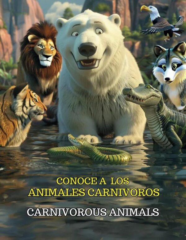 ¡Sumérgete en el fascinante mundo de los animales con nuestro libro para niños: Conoce a los animales Carnívoros, el primero de una serie coleccionable de libros sobre animales. En estas páginas vibrantes, los pequeños exploradores descubrirán a los principales depredadores del reino animal, desde el majestuoso león hasta el temible tiburón. Aprenderán sobre las características únicas de cada especie, qué otros animales forman parte de su dieta, dónde habitan en la naturaleza y cómo se adaptan para sobrevivir.